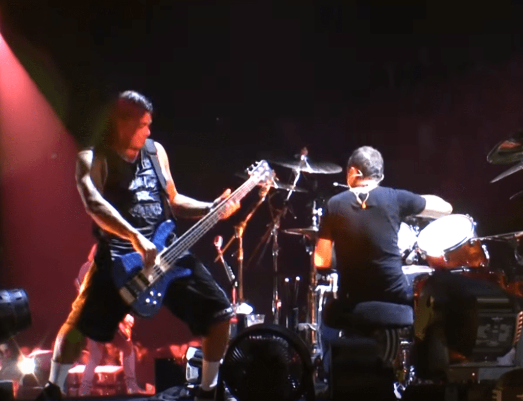 In what may look like a simple jam or practice session to those not familiar with the band; those who follow or appreciate them will most likely recognize its double significance. As we get to the centerpiece of the song, Trip reappears. He sits and watches from afar. As tired and worn as he is, his face also reads, ‘Everything I went through was worth it.’ Trujillo is faithful to the jazz and classical-inspired scales played by Cliff Burton in the original. As a matter of fact, they all appear focused to stay as faithful as possible. They went a half step down (and slowed it down a tiny bit), but it doesn’t change the significance, or intensity of the moment. As the final credits roll; split between the four of them (two on each side) are the words, ‘In Memorium: Mark Fisher’.