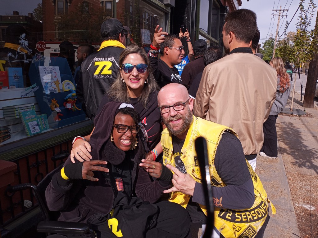 The social model of disability is very real. While i understand this i have to fight with myself every single day of my life that it is me who is in the way of everything because of my disability. i’m not the massively athletic, muscular person i once was; simply leaving the house and going wherever i want is no longer as easy, and i still struggle with hating myself because of it. Going to see Metallica is always a big deal for me, because it takes me a bit outside of that destructive self-doubt.