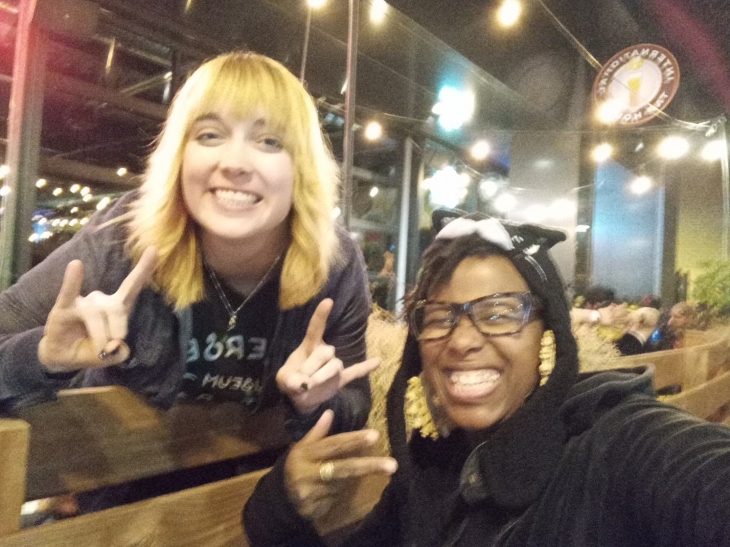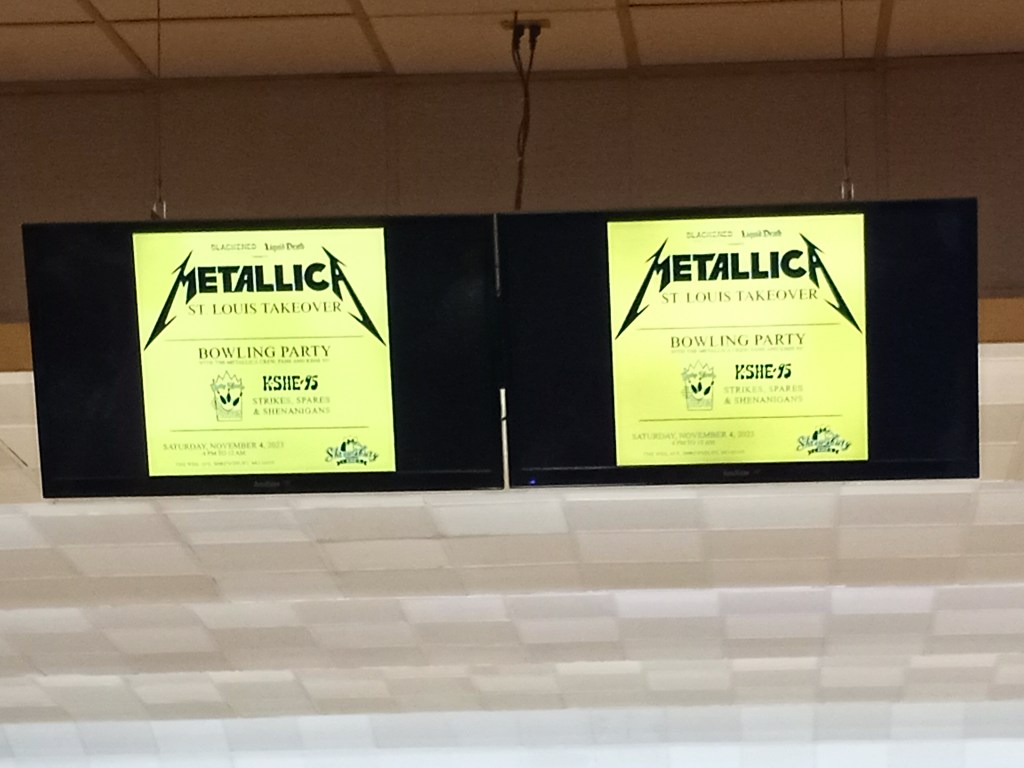 We then moved to Shrewsbury Lanes, where local radio station KSHE and folks on the Metallica crew co-sponsored a bowling party. This was another bittersweet moment because not only have i not bowled since the second grade; but without my prosthetic i wouldn’t even be able to go in a lane to bowl if i wanted to, thereby bringing back that good ‘ol social model of disability. We got there about 15 or 20 minutes before the game was over, but i did get to see Pedrum, Paul and Clara again.