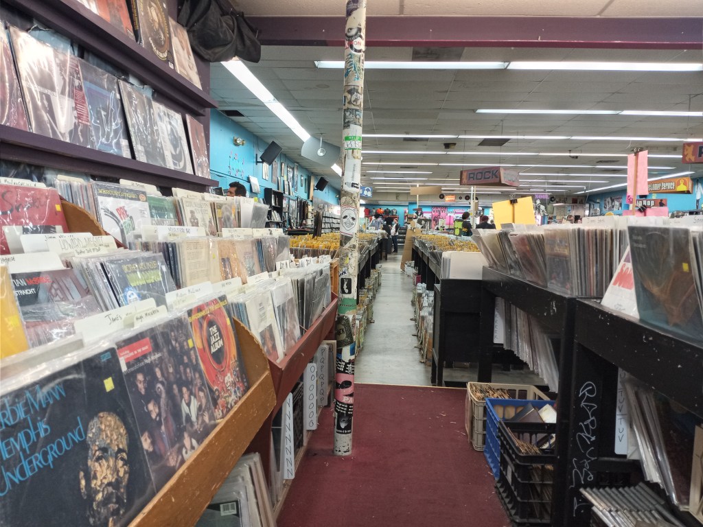 A few of us continued into the new day from the night before, right before night two of the St. Louis stop on the M72 tour, by going to Vintage Vinyl. Record shops used to be like a second residence to me; i spent hours on end in them over the years. Given i don’t go out in public with as much frequency these days, any opportunity to find records in the wild- the stranger the better- always makes me happy. Finding a Keiji Haino, Naked City, Boredoms, Melt Banana, Albert Ayler or Sonny Sharrock vinyl would be a win for me- if you know any of these artists, you know (partly) why i love St. Anger and Lulu, from a musical perspective at least.