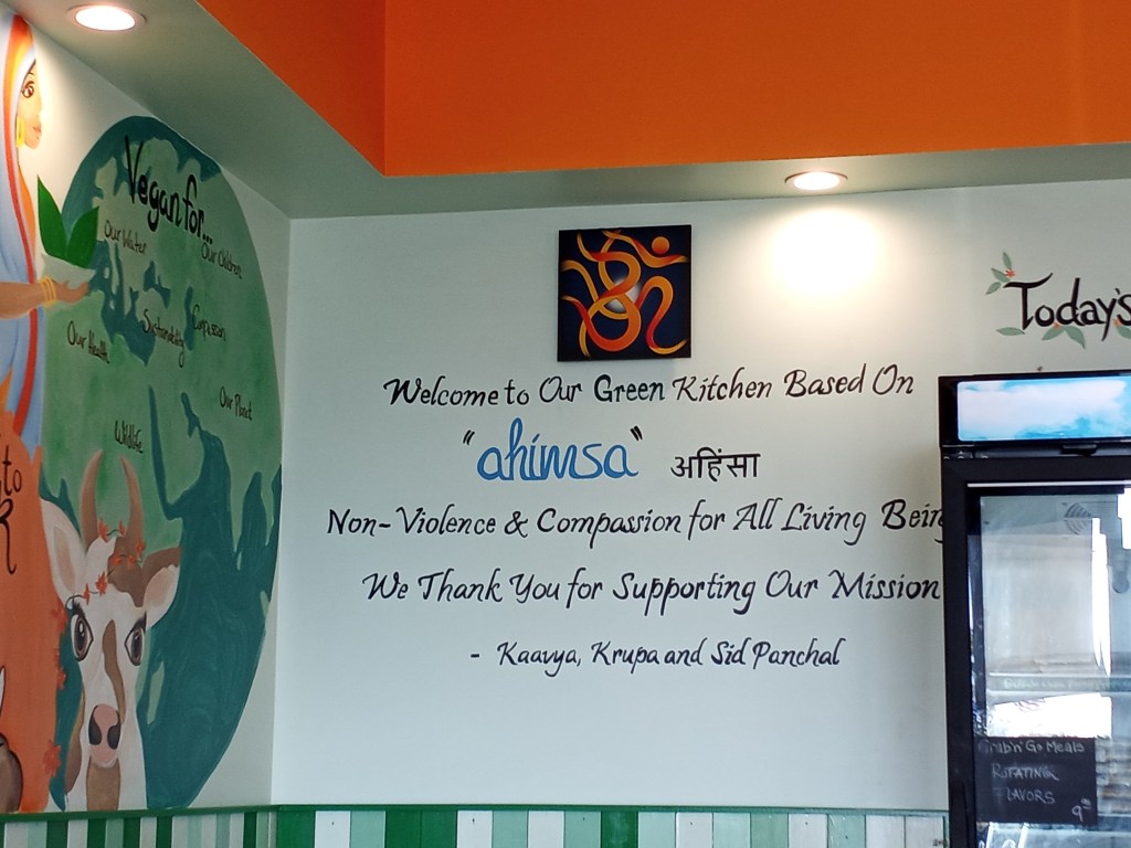 After the book signing, Lance and i went to eat at Bombay Food Junkies, a vegan restaurant emphasizing Indian-based street foods, started by Krupa and Sid Panchal. We actually were greeted by Krupa when we got there, but i was not aware of that until much later. If i were a restaurant connoisseur, i would honestly travel to St. Louis just to eat here again; this place is that good. It also lacked the pretentiousness many vegan-themed restaurants have. It actually reminded me of some of the old school smaller vegan/vegetarian sports i used to go to in NYC in the 90s, when being vegan was not yet popular. Similar to the NYC spots, there were also Muslims and Rastas eating at Bombay Food Junkies.
