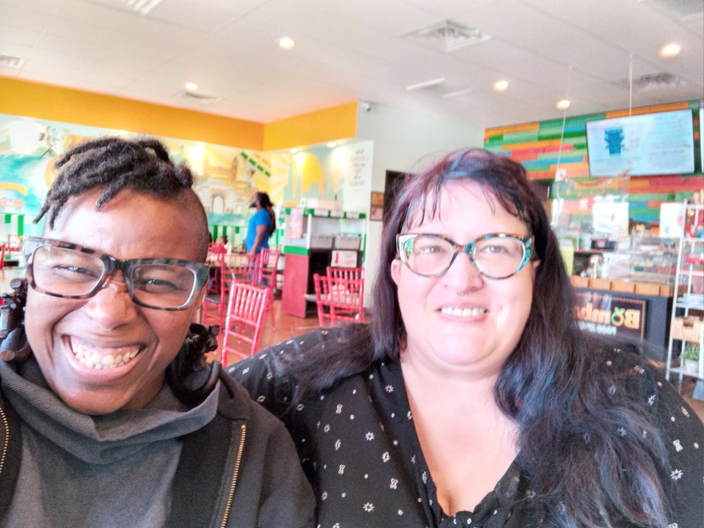 Once i got to the hotel room, all of the tiredness made its return, but not before the joy i felt being in a hotel room that was actually spacious enough for a wheelchair. Most rooms i stay in are workable, but not easy to maneuver in. The one downside of the room i stayed in- there was no bench in the bathroom. It is possible that they may have provided one if asked; that said, even though i am able to transfer in a bathtub on my own with one leg, not everyone can. It also isn’t pleasant to take a shower sitting in a bathtub with one leg. The upside of the bathroom was that the shower head was adjustable enough to actually accommodate someone who has to take a shower sitting down in the bath. This is rarely a thing i’ve seen in hotels. The other upside? There were washcloths! i usually have to remember to bring my own washcloths when i travel, because hotels tend not to have them available for some reason.